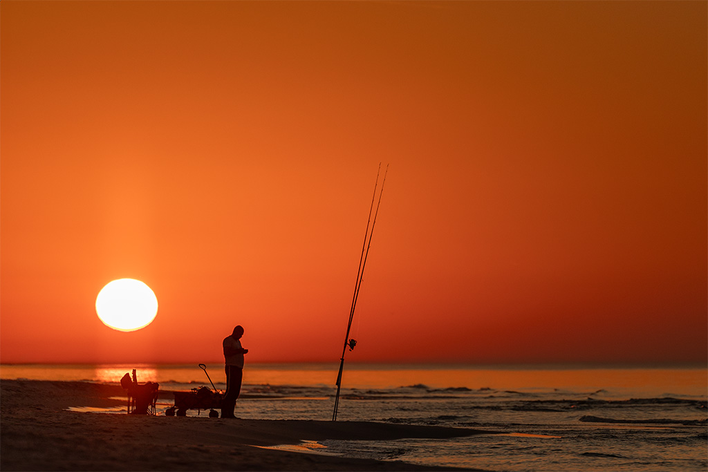 Czekał na nas przepiękny widok. Od dawna moim marzeniem było zobaczyć i móc sfotografować taki „pocztówkowy” zachód słońca. Udało się właśnie tym razem. Wisienką na torcie byl wędkarz, który nieświadomie stał się dopełnieniem kadrów. Kolejny punkt na mapie fotograficznych pragnień został odhaczony.