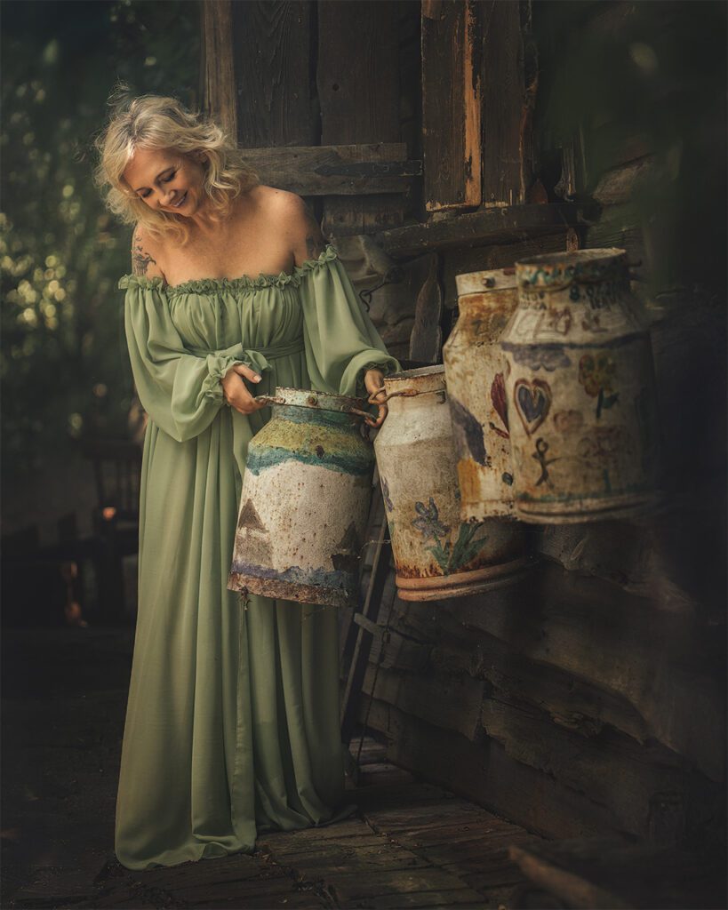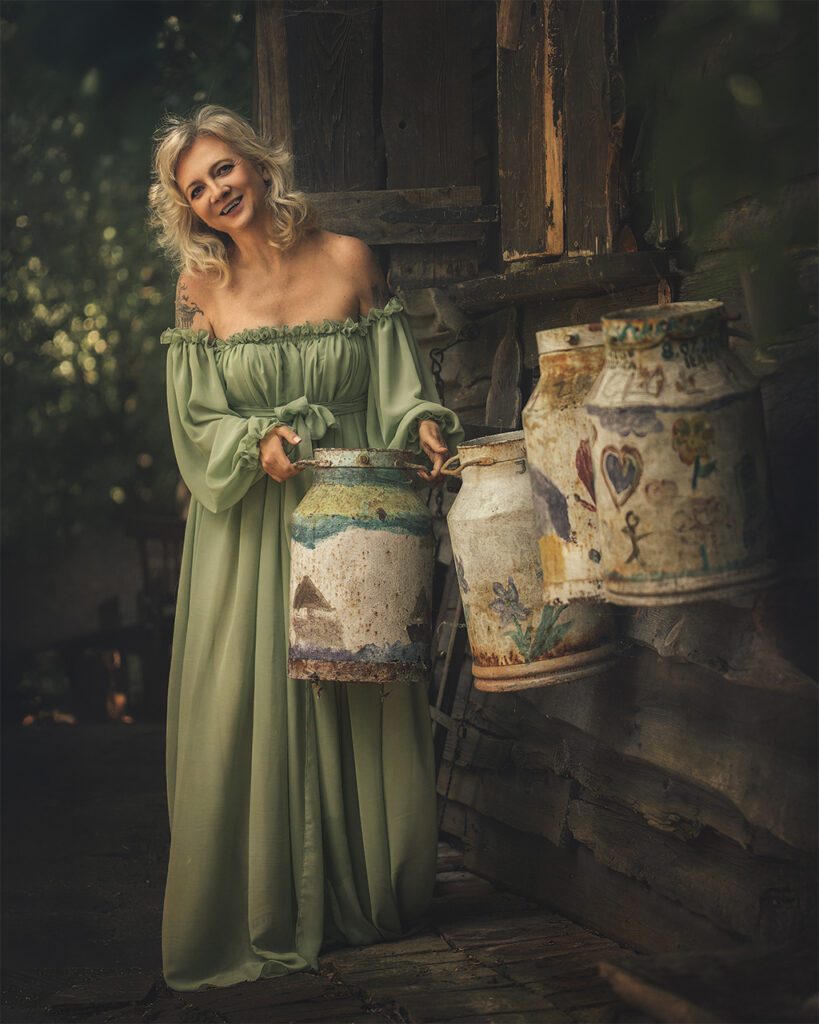 Sukienka wykonana z muślinu. Osobno zakładane rękawki.