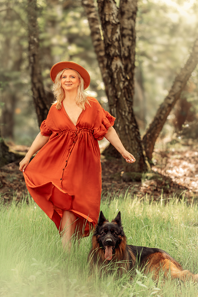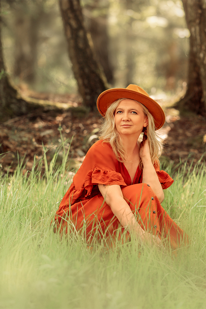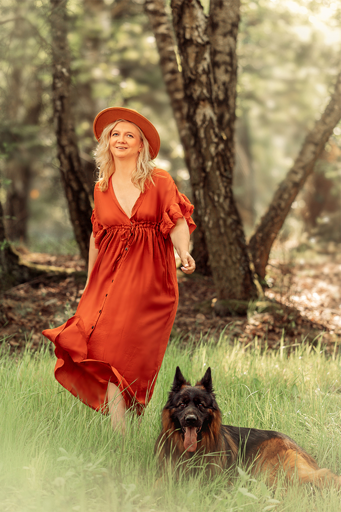 Letnia sukienka pięknie komponująca się z zielenią oraz pasująca do jesiennych kadrów.