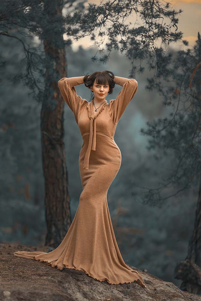 Obcisła sukienka wykonana z bardzo elastycznej dzianiny sweterkowej.